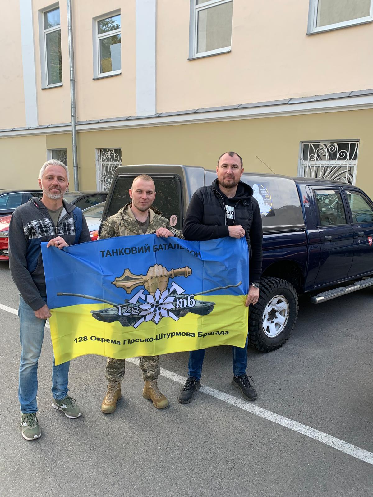 Dne 9. května 2025 jsme s přítelem Martinem předali vozidlo L200 SUV před českou ambasádou v Kyjevě. Vozidlo si přijel vyzvednout člen 128. Zakarpatské brigády ze Záporoží.